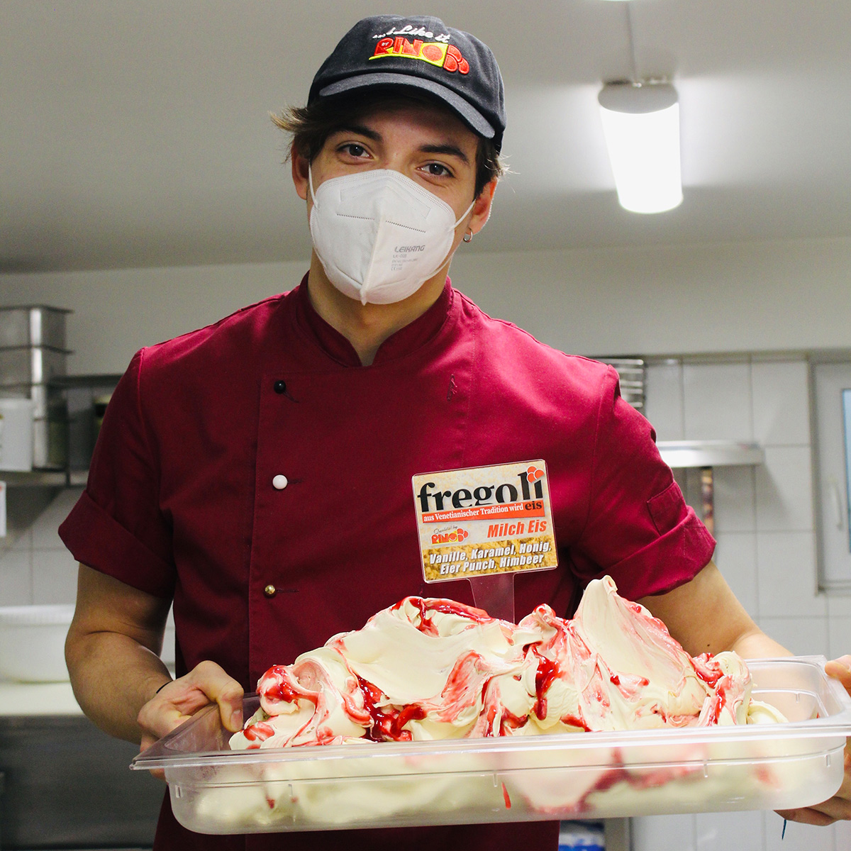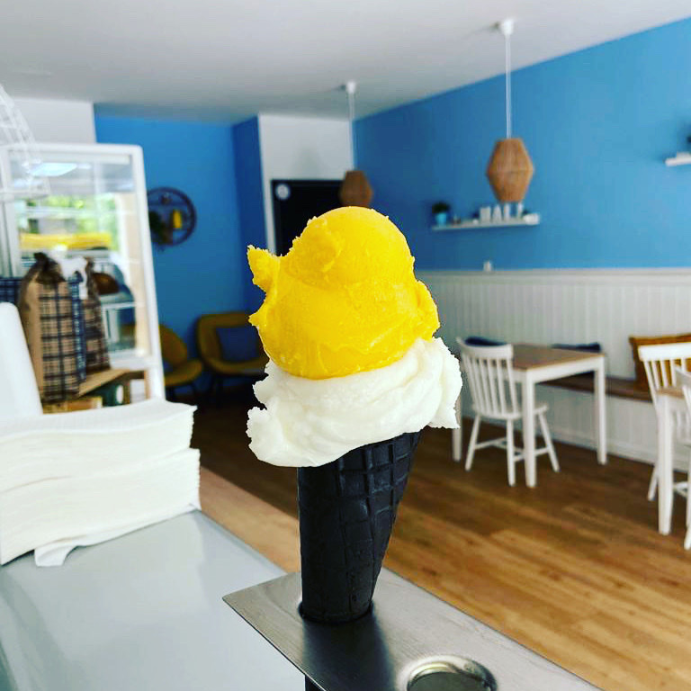 Das Eis bezieht die Filiale direkt aus der Eismanufaktur in Eckernförde. „Für die Zubereitung verwenden wir ausschließlich frische Milch, Quark oder Skyr. Milchpulver oder ähnliche Ersatzstoffe haben bei uns keine Chance“, so Böcek. Zudem wird bei der Auswahl der Zutaten sehr darauf geachtet, wo diese herkommen. Das Marzipan stammt beispielsweise direkt aus Lübeck, die Pistazien aus Sizilien vom Erzeuger. Böcek betont: „Wir arbeiten ausschließlich mit frischen Produkten. Das schmeckt man auch daran, dass jedes Eis seinen eigenen Härtegrad hat.“ Jedes frische Produkt hat seinen eigenen Fettanteil und Aufbau. Diese individuelle Note schmeckt man bei jeder Sorte, schließlich werden keinerlei Weichmacher oder künstliche Aromen hinzugefügt.