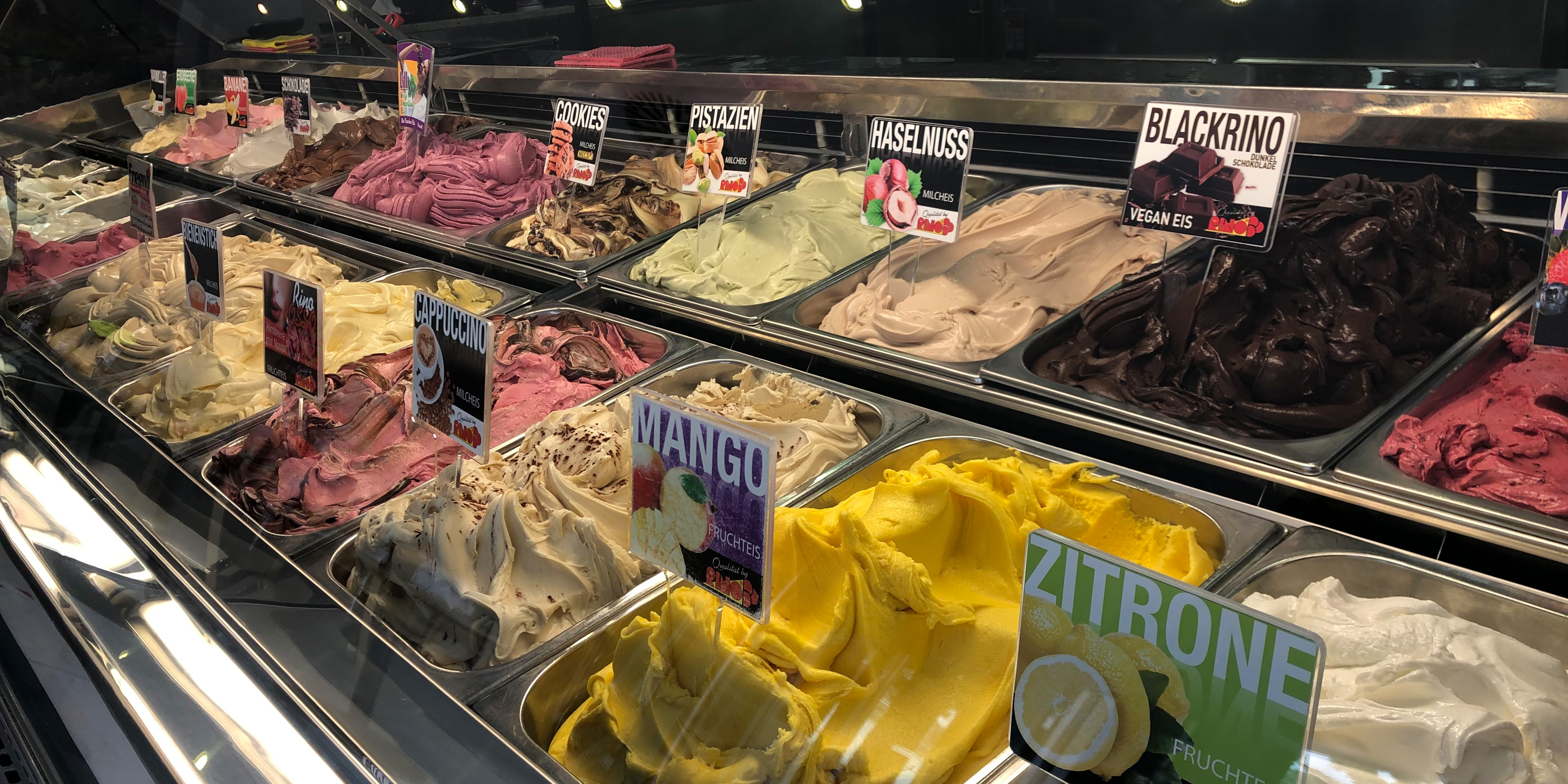 Die beliebtesten Sorten des Giovanni L. sind Mango Maracuja, Erdbeere, Schoko Vic, Stracciatella und Pistazie.