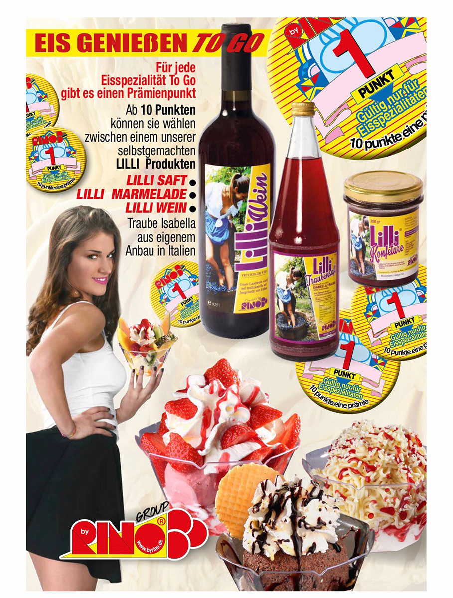 „Unser Eis wird jeden Morgen direkt von mir im Eislabor hergestellt – mit frischer Milch, frischer Sahne und frischem Obst“, erzählt Christian Schiavo. Wer kann schon von sich behaupten, einen eigenen Weinberg in Venetien zu besitzen? ByRino durchaus – dort werden Trauben, Granatäpfel und Melonen angebaut, die zur Herstellung der Eiscreme verwendet werden.